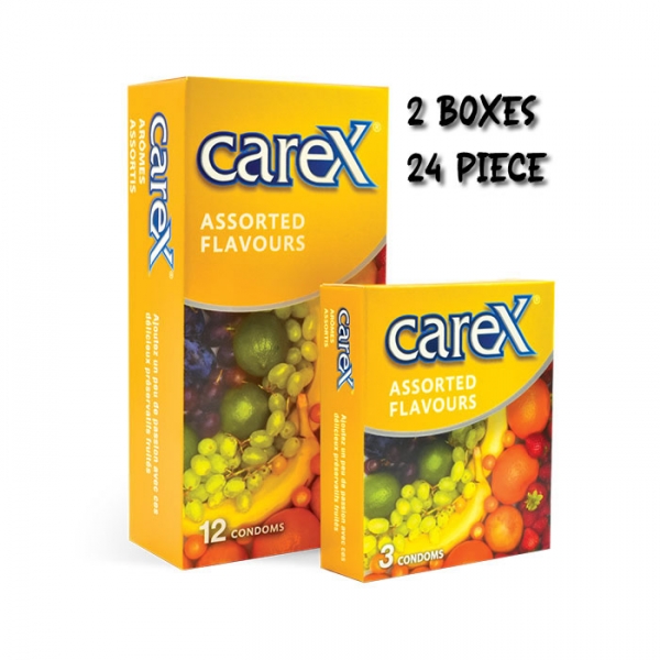 2 boxes Carex Assorted Flavours Condoms 12