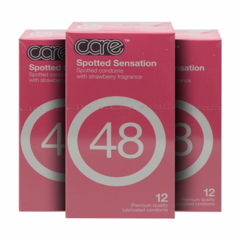 Care 48 Spotted Sensation Fragrant Texture condoms are uniquely designed to give you penetration satisfaction during intercourse. Its spotted texture also heightens pleasure.